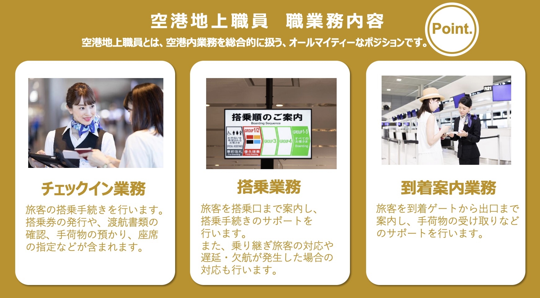 提供职业培训,包括日语和机场相关专业知识等。